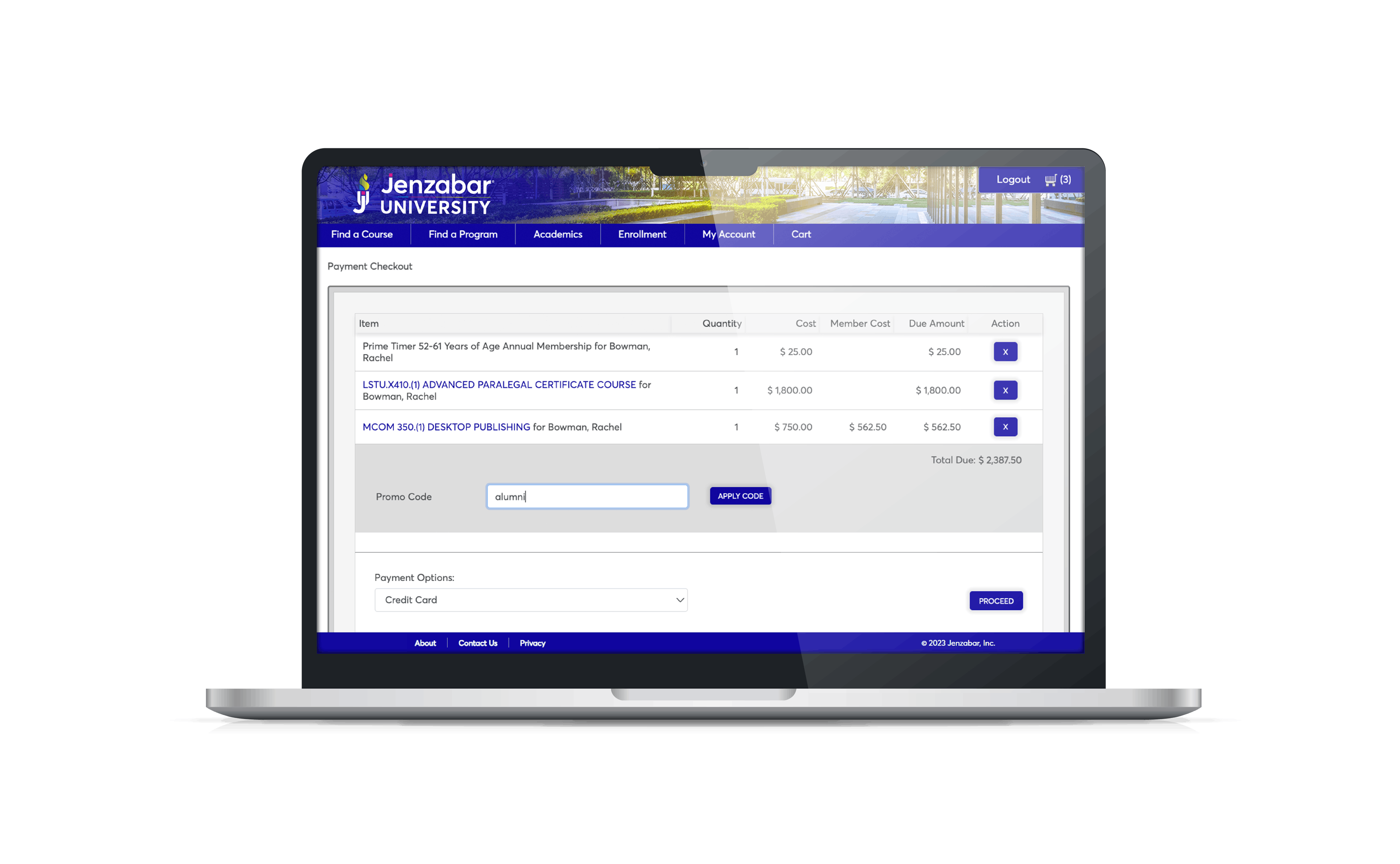 Simplify the registration process for non-traditional programs by offering enrolled and unenrolled learners a familiar online buying experience in a branded storefront. Expand your reach and provide learners with easy access to the skills they need to succeed in the professional world. Best of all, Campus Marketplace integrates with Jenzabar One, ensuring you can unite your data and make informed decisions that drive innovation.